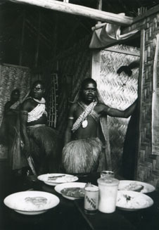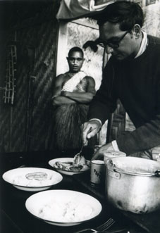 Koumaineu in Godelier's house. Serving lunch for a group of informants.